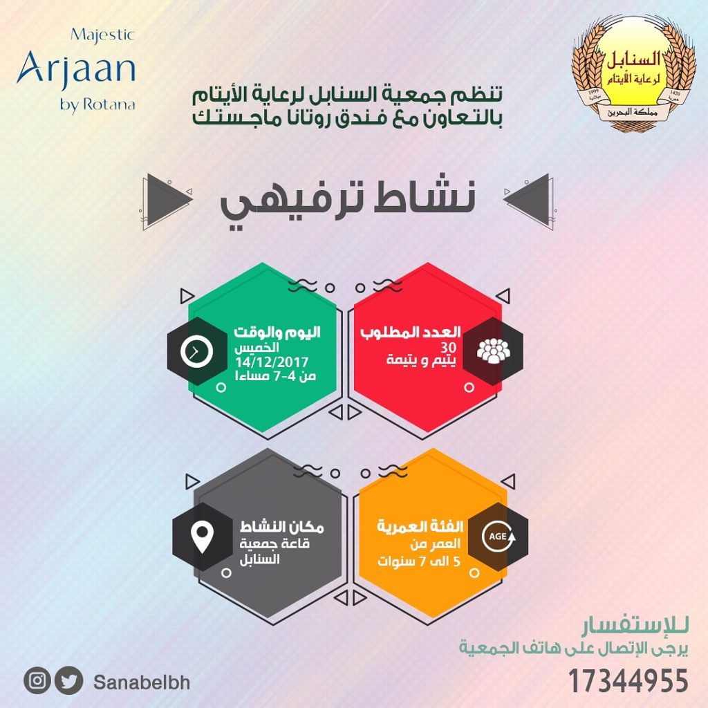 نظمت السنابل بالتعاون مع فندق ماجستك أرجان روتانا نشاطاً ترفيهياً في مقر الجمعية بالبسيتين وذلك يوم الخميس الموافق 14 ديسمبر 2017، بمشاركة 25 طالب وطالبة من المرحلة الإبتدائية.