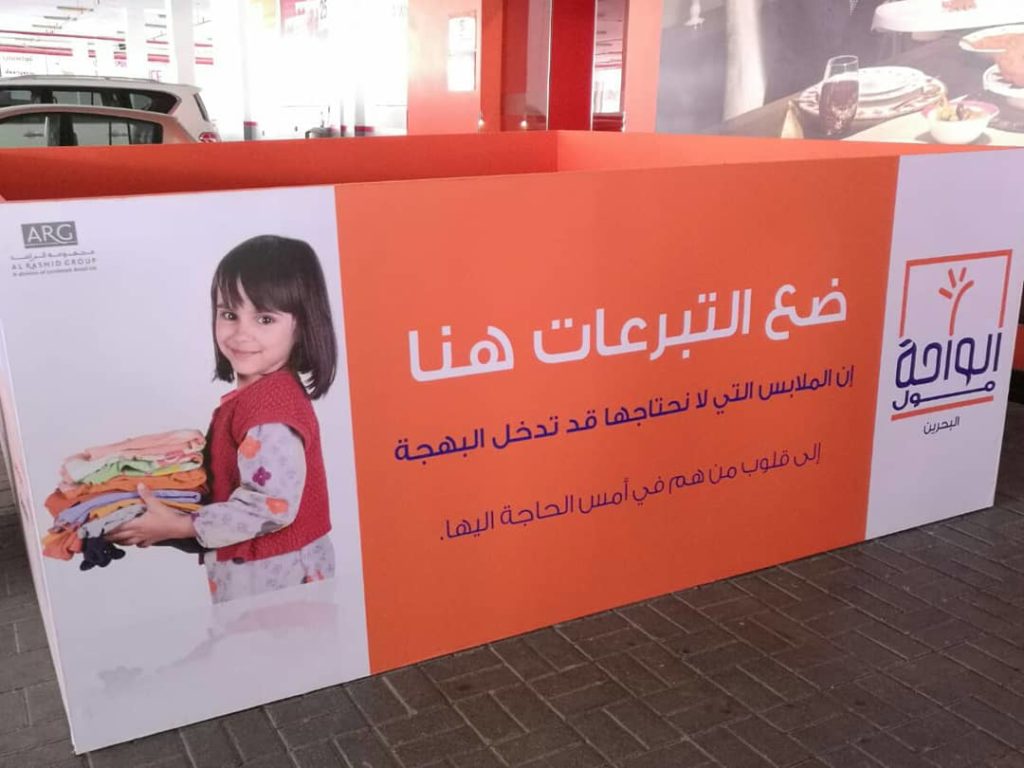 حيث تم تخصيص صناديق خاصة لجمع التبرعات العينية بجميع فروع مجمعات الواحة بالبحرين، وسيتم بعد الإنتهاء من الحملة مع نهاية شهر رمضان المبارك فرز التبرعات وتوزيعها على المستحقين من منتسبي الجمعية من أيتام البحرين.